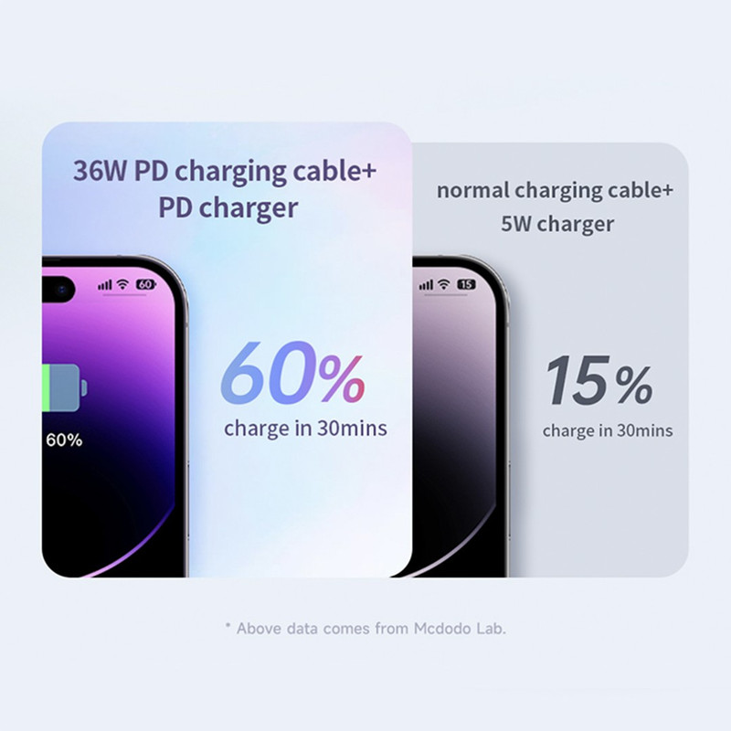این کابل با پشتیبانی از فناوری  فست شارژ PD 36W قادر است آیفون و آیپد های دارای درگاه لایتنینگ را با سرعت بالا شارژ کند و برای کاربرانی که به دنبال یک کابل قدرتمند و بادوام هستند، انتخابی ایده‌آل محسوب می‌شود.